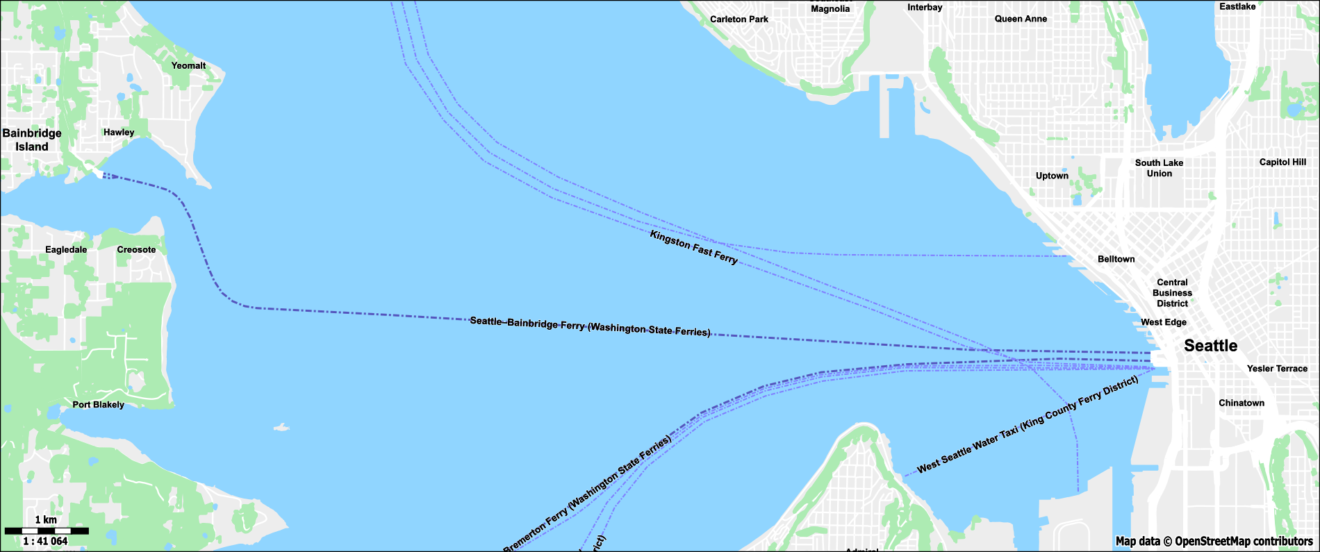 There are many ferry routes connecting Seattle to neighboring islands. Many people commute daily to work using ferries, making them an essential part of the region’s transport network.